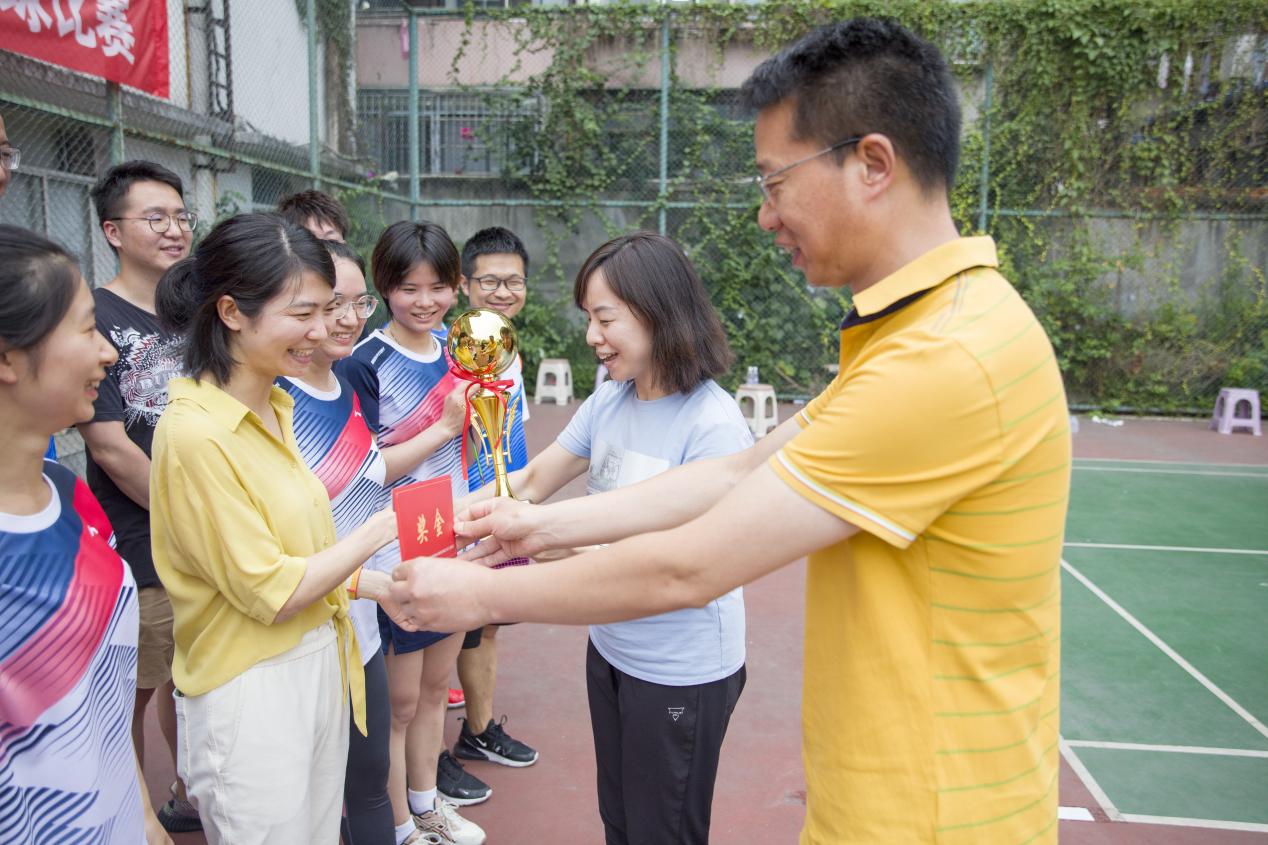 公司黨委副書記、董事、總經(jīng)理周武平為冠軍頒獎(jiǎng)并合影留念