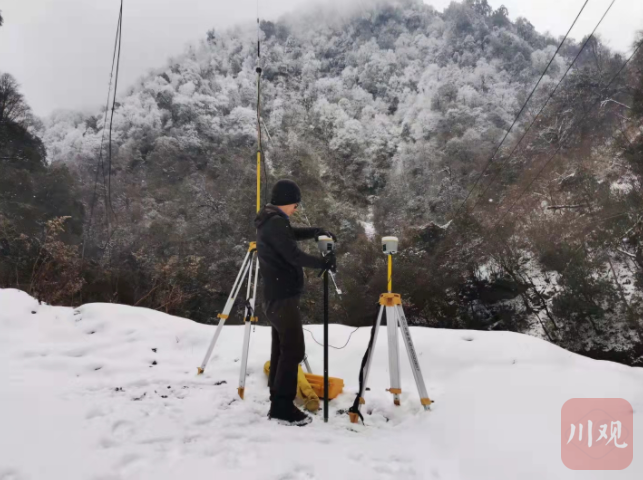 地勘人員正在白雪皚皚的二郎山開展勘測(cè)工作