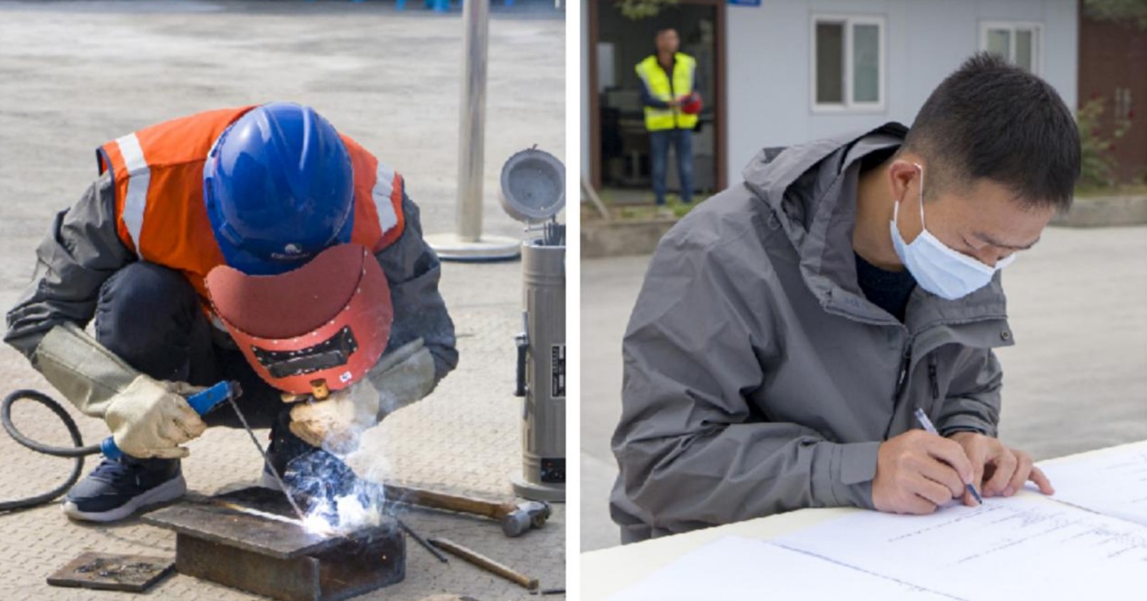 測量技能競賽包含編制測量方案,測量儀器采用全站儀,每組由3名隊(duì)員共同完成測量技能競賽內(nèi)容。焊接技能競賽分為銅止水搭接焊、鋼板平焊、鋼管環(huán)焊和鋼筋平焊、鋼筋立焊。設(shè)計(jì)公司有17名隊(duì)員參加比賽,其中測量項(xiàng)目分4隊(duì)共12人,焊接項(xiàng)目5人。