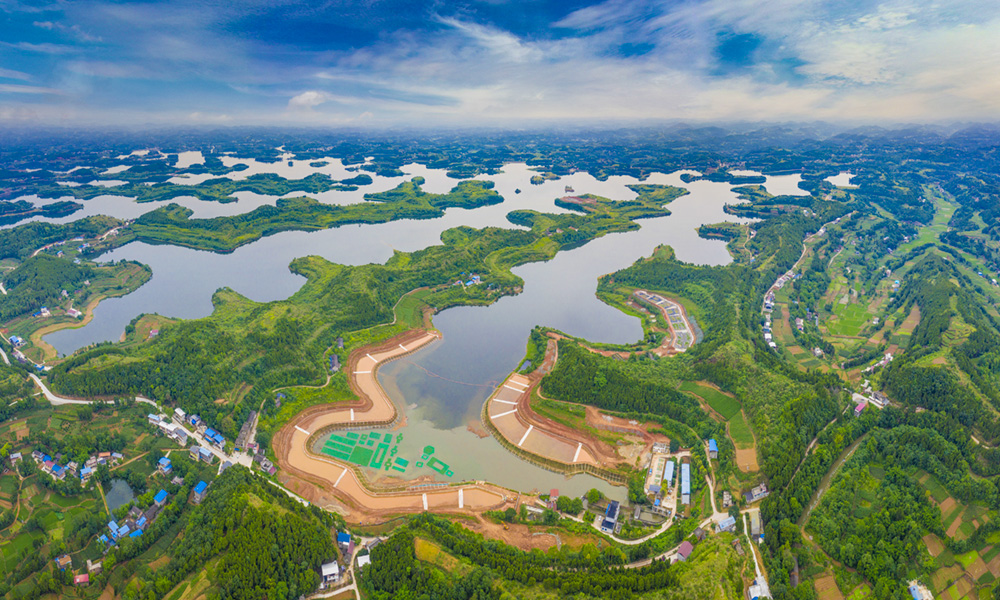 魯班水庫(kù)位于四川省綿陽(yáng)市三臺(tái)縣魯班鎮(zhèn)境內(nèi),是涪江流域凱江的一級(jí)支流綠豆河的發(fā)源地,是都江堰灌溉系統(tǒng)人民渠七期工程干渠末端的一座大(2)型屯蓄水庫(kù),主要由人民渠引岷江水源充蓄。地理坐標(biāo)在東經(jīng)104°59′~105°01′和北緯30°53′~30°56′之間。水庫(kù)隸屬于四川省水利廳,主管部門(mén)為四川省農(nóng)田水利局,管理單位為四川省都江堰人民渠第二管理處。水庫(kù)正常蓄水位水面面積13.6平方千米,水岸邊總長(zhǎng)86.0千米。灌溉涪江西岸,凱江南岸,郪江北岸,三臺(tái)、射洪、大英三縣部分丘陵地帶農(nóng)田面積62.69萬(wàn)畝。水庫(kù)樞紐工程永久性建筑物有主壩一座、副壩六座、灌溉用放水隧洞三條、放空底洞一條、均按二級(jí)建筑物設(shè)計(jì)。