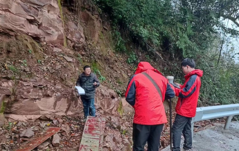 2022年12月,由梁洪、曾攀、范時(shí)杰、蘭小平組成的水文地質(zhì)組奮戰(zhàn)在工程現(xiàn)場(chǎng)。瀑布溝取水方案目前最重要的難點(diǎn)問(wèn)題就是大相嶺隧洞的水文地質(zhì)條件及隧洞涌突水量大,該問(wèn)題直接關(guān)系到瀑布溝方案的合理性與可行性。組員們深感責(zé)任重大,任務(wù)艱巨。正在攻堅(jiān)的關(guān)鍵時(shí)刻,又趕上了疫情高發(fā)期,組員們不可避免地相繼被病毒侵襲。項(xiàng)目組與時(shí)間賽跑,與病毒鏖戰(zhàn),他們感染后僅僅休息了兩三天,在高燒剛退,喉嚨還是劇痛幾乎發(fā)不出聲,全身乏力等身體狀況下,就做好防護(hù)措施繼續(xù)開(kāi)展現(xiàn)場(chǎng)外業(yè)工作?!昂拢科疔`嚴(yán)霜”。山路野草遍布,他們的褲腿被草葉上的濃霜寒露濕透,朔風(fēng)凜冽刮在臉上,本就虛弱的身體冷得顫抖,不時(shí)彎下腰劇烈咳嗽,但還是忍著不適一絲不茍地工作。他們說(shuō)“自己病了是小事,公司的事是大事,不能因?yàn)樽约喊压て诮o耽誤了?!闭沁@種對(duì)水利事業(yè)兢兢業(yè)業(yè)、公而忘私的精神支撐著他們負(fù)重前行。經(jīng)過(guò)大量的現(xiàn)場(chǎng)外業(yè)調(diào)查工作,對(duì)相關(guān)基礎(chǔ)數(shù)據(jù)的模擬及科學(xué)精準(zhǔn)的分析,對(duì)大相嶺隧洞涌水量及涌突水危險(xiǎn)性做出了預(yù)測(cè),為方案提供了技術(shù)支撐。