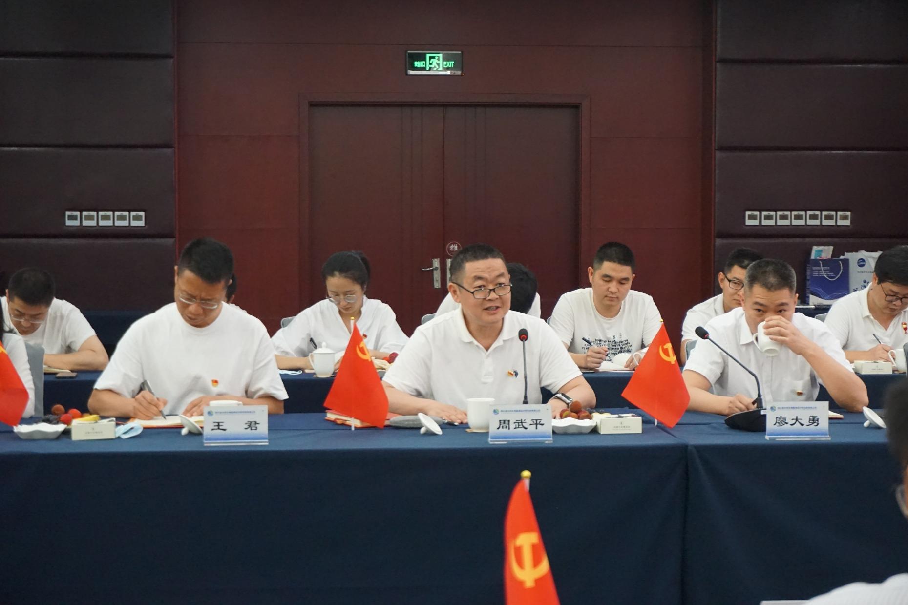范剛和一分院黨支部書記廖大勇分別對(duì)兩個(gè)黨支部的基本情況、業(yè)務(wù)開展情況及黨建工作做了簡(jiǎn)短的介紹,一分院副分院長周祥志匯報(bào)了分院承擔(dān)的長征渠引水工程規(guī)劃設(shè)計(jì)情況。隨后王君、蘇春、趙毅相繼對(duì)黨建引領(lǐng)企業(yè)、高校高質(zhì)量發(fā)展等問題作精煉發(fā)言,指出要不斷推動(dòng)黨建工作和業(yè)務(wù)、研究工作的深度融合,才能使黨建工作成為促進(jìn)企業(yè)和高校不斷發(fā)展創(chuàng)新的“紅色引擎”。