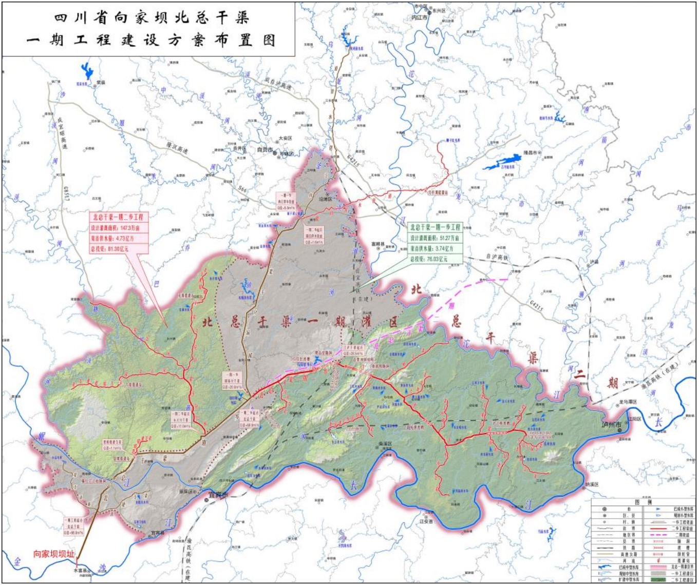 附圖1 向家壩灌區(qū)北總干渠一期工程建設(shè)方案布置圖
