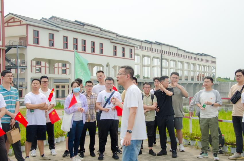 參加活動的黨員及職工代表在湯壩廠房前合影